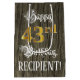 This fancy and elaborate birthday themed gift bag design features the message “Happy 43rd Birthday,”, along with an editable recipient name. Some of the message is in elegant script-style text, the large number “43rd” features a faux/imitation gold-inspired look pattern, and the background has a faux/imitation woodgrain-inspired pattern. An ornate birthday themed gift-bag like this might be used when giving a gift or present in celebration of somebody’s forty third birthday. [~Z0000562]