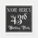 This elegant and luxurious birthday themed paper napkin design features a personalized name and the message “43rd Birthday Party”. The large number “43rd” and the words “Birthday Party” are in elaborate script-style text, and the background is colored black by default (although it can be customized). Opulent, elaborate paper napkins like this might be used at a birthday celebration being held in celebration of somebody’s forty third birthday. [~Z0000563]