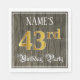 This luxurious and ornate birthday paper napkin design features a custom name and the message “43rd Birthday Party”. The large number “43rd” has a faux/imitation gold-inspired colouring pattern, the words “Birthday Party” are in fancy script-style text, and the background features a faux/imitation woodgrain-inspired pattern. Opulent, elegant paper napkins like this might be used at a birthday celebration/party being held in celebration of somebody’s forty third birthday. [~Z0000566]