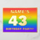 The front of this eye-catching and fun forty-third birthday celebration/party foil invitation card design features a custom name, a large number “43rd”, the message “BIRTHDAY PARTY!”, and a border. The background of the front has a joyful, colorful, rainbow spectrum inspired gradient pattern. The back features personalized details about the event, such as the date, time, place, and any other information that may be relevant. Personalized invitations like these might be a fun way to invite guests/attendees to a birthday party/gathering being held to celebrate somebody’s 43rd birthday. [~Z0000599]