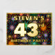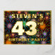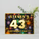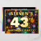 The front of this upbeat and joyful forty-third birthday celebration foil invitation card design features a customisable name, a large number “43rd”, the message “BIRTHDAY PARTY!”, and a border. The background of the front has a vibrant, multicolored bursting celebratory fireworks-inspired pattern. The back features personalised details about the event, such as the date, time, location/venue, and any other useful information. Customisable invitations like these might be a fun way to invite guests/attendees to a birthday party being held to honour somebody’s 43rd birthday. [~Z0000602]