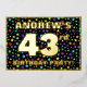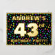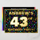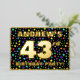 The front of this upbeat forty-third birthday celebration/party foil invitation card design features a custom name, a large number “43rd”, the message “BIRTHDAY PARTY!”, and a border. The background of the front has an eye-catching, multicolored starfield pattern. The back features personalised details about the event, such as the date, time, venue/place, and any other relevant information. Customised invitations like these might be a fun way to invite guests to a birthday party being held to celebrate somebody’s 43rd birthday. [~Z0000600]