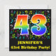 The front of this fun, colourful, and vibrant birthday party invitation design features a large number "43" having a rainbow spectrum gradient inspired pattern. It also features an editable name and the message "43rd Birthday Party!". Part of the background has a fun and colourful music notes and symbols pattern. The back features personalised details/information pertaining to the event that the potential guests are being invited to. Fun, customisable birthday celebration invitation cards like this might be sent to potential guests of a gathering being held to honour a musician’s, a song composer’s, a singer’s, or somebody else’s 43rd birthday. [~Z0000427]