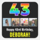 43rd Birthday: Rainbow “43”; Custom Photos & Name Square Sticker