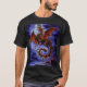 I give wanted to give this a 4 instead of a 5 because these Basic DARK T0shirts run unexpectedly SLIM or Narrow. Which is great if you do not have a potbelly, but I have a paunch. It isn't the shirt's fault that I've got a beer belly. The design and shirt itself is a quality cotton shirt. The color is more of a deep purple, but still a very pretty color. The Basic DARK T-shirts run a bit SLIMMER than the Basic Ts. The neck is a fraction narrower (or seems to be narrower) also. I'm a paunchy middle-aged woman and my neck is 12 inches (31cm) thick and the neckline fell about the same as in the photo of the man, and I had the desire to tug it a bit. So if you're a thick necked man or like loose shirts, be aware these are slimmer shirts. Once I get rid of my lockdown paunch it'll look great. The shirt washed well in cold water with no apparent bleeding. We don't have a dryer, so it hung dry. Did not shrink. Love the colors and the design. The design looks smaller on my shirt than it does on the model on-line. But still, it looks good on the shirt. The printing looks as it does on the model, just the size seems fractionally smaller. Washed garment in cold water, hung dry and design appeared unaffected.
