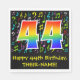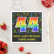 This fun, colourful, and vibrant birthday paper napkin design features a large number "44" with a rainbow spectrum gradient inspired pattern, along with the message "Happy 44th Birthday,", and a customisable name. Part of the background features a pattern of various music notes and symbols having a variety of colours and sizes. Fun, personalised birthday themed paper napkins like this might be used at a musician’s, a singer’s, a composer’s, or somebody else’s forty fourth birthday celebration. [~Z0000421]