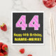 This fun and joyful birthday themed paper napkin design features a large number "44" with a dark pink and light pink stripes pattern containing heart shapes. It also features the birthday greeting message "Happy 44th Birthday,", and a personalised name. Paper napkins like this might be fun to use at somebody’s forty fourth birthday party. It might also be a fun choice for somebody who has a birthday that falls on Valentine's Day (February 14th), due to its loving heart symbols and colours. [~Z0000436]