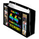 This bold and joyful birthday themed gift bag design features the message “HAPPY 44TH BIRTHDAY,“ with the text having a multicolor rainbow spectrum inspired gradient pattern, along with a customisable recipient name. The photos to the left and the right of the rainbow-patterned message on the front of the card can be personalised, perhaps with photos of the recipient, the recipient’s family and friends, and/or the sender(s) of the gift. A giftbag like this might be used when giving a gift in honour of somebody’s forty-fourth birthday. (Photography © Storytree Studios, Stanford, CA.) [~Z0000668]