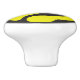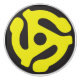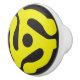 Ceramic knob with 45 record adapter on it in yellow on black background