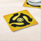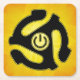 45 RPM Power Record Adapter. A silhouette of a 45 rpm adapter with a power symbol in the centre (IEC 5009 symbol). Black with yellow outline over a yellow and orange background. Power up with some classic vintage records!