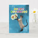 A playful siamese cat chasing balloons. A great way for a cat lover to send a birthday card.