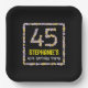 This floral, nature-inspired birthday themed paper plate design features a customisable name, along with the message “45th Birthday Party!”. The border plus large number “45” both consist of flower icons. Paper plates like these might be used at a party held in celebration of somebody’s forty-fifth birthday, or some other 45th anniversary or event. [~Z0000655]