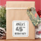 This stylish forty-fifth birthday celebration square sticker design features a customisable name, a fancy art deco look inspired number “45th”, the message “BIRTHDAY PARTY!”, and a border pattern consisting of lines. Elegant birthday themed stickers like these might be given out or used at a party celebrating somebody’s 45th birthday, or perhaps used when preparing invitations or presents/gifts for such an event. [~Z0000618]