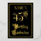 The front of this opulent, ornate, foil forty-fifth birthday celebration/party invitation design features the message “45th Birthday Celebration” in luxurious script-style text. It also features an editable name. The background of the front is coloured black by default (although it can be customised to a different colour). The back features personalised details about the event, such as the date, time, location, and any other relevant information. Fancy, elegant, personalised invitations like these might be used to invite guests to a birthday celebration being held to celebrate somebody’s forty fifth birthday. [~Z0000589]