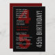45th Modern Birthday Black White Red Metallic Invitation