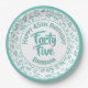 This over-the-hill design has a teal random number pattern with milestone 45 repeated in varied sizes and angles for an all-over print.  There is a white circle in the centre for your text and white and teal rings around the rim.