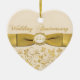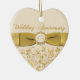 This elegant ceramic heart shaped ivory and gold floral 45th wedding anniversary Christmas ornament has a gold PRINTED ribbon and bow with an ivory and gold PRINTED medallion on it. It would make a lovely keepsake for the couple celebrating 45 years together. The text is customisable. If you need help customising it, please email niteowlstudio@gmail.com.