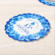 Blue floral sapphire wedding anniversary paper coasters. Personalise these anniversary coasters with your own couples names and marriage dates. Other matching items are also available. © Original watercolor pansy hand painting and design by Sarah Trett for www.mylittleeden.com and www.mylittleedenweddings.com on Zazzle.