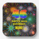 This bold and exciting birthday-themed paper plate design features a large number “46” with a colourful rainbow spectrum inspired gradient pattern, along with the message “HAPPY 46th BIRTHDAY,”, and a customisable name. The background of the front features an upbeat, multicolored pattern inspired by bursting celebratory fireworks. Joyful birthday themed paper plates like this might be used at a birthday party in celebration of somebody’s forty sixth birthday. [~Z0000604]
