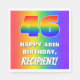 This exciting and joyful birthday paper napkin design features a large number “46” with a colourful rainbow spectrum inspired gradient pattern, along with the message “HAPPY 46th BIRTHDAY,”, and a customisable recipient name. The background also features a fun multicolored rainbow spectrum inspired gradient pattern. Paper napkins like this might be used when celebrating somebody’s 46th birthday. [~Z0000573]