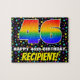 This upbeat and vibrant birthday jigsaw puzzle design features a large number “46” having a multicolored rainbow spectrum inspired gradient pattern. It also features the message “HAPPY 46th BIRTHDAY,”, and a personalised recipient name. The background has a joyful, multicolored star shapes pattern. An exciting, personalised birthday puzzle like this might be a fun way to send birthday wishes to somebody who is celebrating their forty-sixth birthday. [~Z0000607]