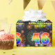 This fun and exciting birthday-themed wrapping paper design features a large number “46” with a colourful rainbow spectrum gradient inspired pattern, along with the message “Happy 46th Birthday,”, and an editable name. The background features a vibrant and colourful pattern inspired by the look of bursting celebratory fireworks. Birthday themed wrapping paper like this might be a fun way to wrap a gift or present being given to somebody who is celebrating their forty sixth birthday. [~Z0000587]
