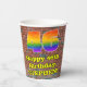 This vibrant and exciting urban graffiti and street art themed birthday paper cup design features a large number “46” having a colourful rainbow spectrum gradient inspired pattern. It also features the message “Happy 46th Birthday,”, and a custom name. The background features a brick wall pattern. Vibrant, colourful paper cups like this might be fun to have at a birthday celebration/party being held to honour somebody’s forty sixth birthday. [~Z0000543]