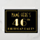 The front of this vintage-look and Roaring Twenties inspired forty-sixth birthday party/celebration foil invitation features a personalised name, a large art deco style inspired number “46th”, the message “BIRTHDAY PARTY”, and a border pattern consisting of lines. The front also features a black-coloured background by default, but it can be customised to a different colour if desired. The back features personalised details about the event, such as the date, time, venue, and any other important information. Elegant, luxurious, editable invitations like these might be used to invite guests to a birthday party/gathering being held to honour somebody’s 46th birthday. [~Z0000591]
