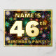 The front of this exciting forty-sixth birthday party foil invitation postcard design features a customisable name, a large number “46th”, the message “BIRTHDAY PARTY!”, and a border. The background of the front features an eye-catching, colourful bursting celebratory fireworks-inspired pattern. The back features personalised details about the event, such as the date, time, place/venue, and any other relevant information. Editable invitations like these might be a fun way to invite guests/attendees to a birthday gathering/party being held in celebration of somebody’s 46th birthday. [~Z0000609]
