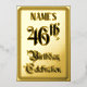 The front of this luxurious forty-sixth birthday celebration/party foil announcement card design features the message “46th Birthday Celebration” in ornate script-style text. It also has a customisable name. The back features personalised details about the event, such as the date, time, venue, and any other useful information. Elaborate, opulent, customisable invitations like these might be used to invite guests to a birthday party/celebration being held in celebration of somebody’s forty-sixth birthday. [~Z0000596]
