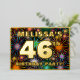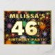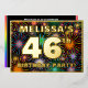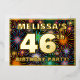 The front of this fun and eye-catching forty-sixth birthday party/celebration foil invitation card design features an editable name, a large number “46th”, the message “BIRTHDAY PARTY!”, and a border. The background of the front features an exciting, multicolored pattern that resembles bursting celebratory fireworks. The back features personalised details about the event, such as the date, time, venue, and any other relevant information. Personalised invitations like these might be a fun way to invite attendees/guests to a birthday gathering/party being held to honour somebody’s 46th birthday. [~Z0000602]