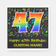 This fun, vibrant, and colourful birthday paper napkin design features a large number "47" with a rainbow spectrum gradient inspired pattern, along with the message "Happy 47th Birthday,", and an editable name. Part of the background has a pattern of various music notes and symbols having a variety of colours and sizes. Fun, personalised birthday themed paper napkins like this might be used at a musician’s, a singer’s, a composer’s, or somebody else’s 47th birthday celebration. [~Z0000421]