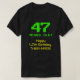 This fun and nerdy shirt design features the message "47 YEARS OLD!", the birthday greeting message "Happy 47th Birthday,", and an editable name. The upper age digits and text have a nerdy, pixelated, green, 8-bit graphics style look inspired by that of retro video games and 1980s computer games. The lower greeting message features a geeky, yellow, vintage digital computing inspired look. Shirts like this might be worn by the attendees at a birthday party being held to celebrate the forty-seventh birthday of somebody who really likes retro video gaming or historic computers. [~Z0000455]