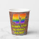 This vibrant and fun urban street art and graffiti themed birthday paper cup design features a large number “47” having a colourful rainbow spectrum gradient inspired pattern. It also features the message “Happy 47th Birthday,”, and a personalised name. The background features a brick wall pattern. Colourful, vibrant paper cups like this might be fun to have at a birthday party being held to honour somebody’s forty seventh birthday. [~Z0000543]