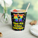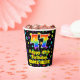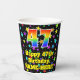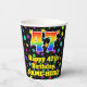 This cheerful and joyful birthday paper cup design features a large number “47” with a rainbow spectrum gradient inspired pattern, along with the message “Happy 47th Birthday,”, and a customisable name. The background features a vibrant and colourful star field inspired pattern. Vibrant, colourful paper cups like this might be fun to use at a birthday celebration being held to honour somebody’s forty seventh birthday. [~Z0000540]