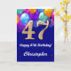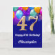 47th Birthday Navy Blue and Gold Colourful Balloons Birthday Card. For further customisation, please click the "Customise it" button and use our design tool to modify this template.