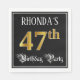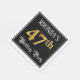 This elegant and luxurious birthday-themed paper napkin design features an editable name and the message “47th Birthday Party”. The large number “47th” has an imitation/faux gold-inspired colouring pattern, the words “Birthday Party” are in ornate script-style text, and the background is coloured black by default (although it can be customised). Ornate, fancy paper napkins like this might be useful at a birthday celebration being held in celebration of somebody’s 47th birthday. [~Z0000565]