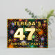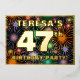 The front of this vibrant forty-seventh birthday party/celebration foil invitation card design features a custom name, a large number “47th”, the message “BIRTHDAY PARTY!”, and a border. The background of the front has an eye-catching, multicolored pattern that resembles bursting celebratory fireworks. The back features personalised details about the event, such as the date, time, venue/location, and any other relevant information. Editable invitations like these might be a fun way to invite attendees to a birthday gathering/party being held to honour somebody’s 47th birthday. [~Z0000602]
