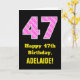 47th Birthday: Pink Stripes and Hearts "47" + Name Card