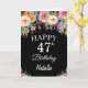 47th Birthday Watercolor Floral Flowers Black Card with personalised name and age. For further customisation, please click the "Customise it" button and use our design tool to modify this template.