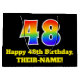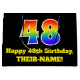 This vibrant and fun birthday themed gift bag design features a large number "48" with a rainbow spectrum gradient inspired pattern, along with the message "Happy 48th Birthday,", and a customisable name. It also has a black-coloured background. A birthday themed giftbag like this might be a fun way to wrap a gift or present being given to somebody who is celebrating their 48th birthday. [~Z0000521]