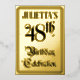 The front of this ornate forty-eighth birthday party/celebration foil invitation/announcement card design features the message “48th Birthday Celebration” in elaborate script-style text. It also features a custom name. The back features personalised details about the event, such as the date, time, location, and any other information that may be important. Elaborate, fancy, customised invitations like these might be used to invite guests to a birthday celebration being held in celebration of somebody’s 48th birthday. [~Z0000596]