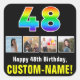 48th Birthday: Rainbow “48”; Custom Photos & Name Square Sticker