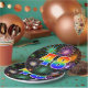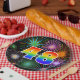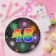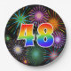 This cheerful, fun, and colourful paper plate design features a large number "48" coloured with a rainbow spectrum gradient inspired pattern. It also features a vibrant and exciting bursting celebratory fireworks inspired pattern. The background is coloured black. Fun paper plates like this might be used at somebody’s forty eighth birthday celebration, a 48th anniversary party, or some other 48th event. [~Z0000490]