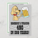 We're Celebrating 490 In Dog Years featuring a cartoon dog with a big beer. A great invitation for someone celebrating their 70th birthday party. A hilarious invite for anyone turning seventy.