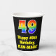 This colourful and fun birthday paper cup design features a large number “49” having a rainbow spectrum gradient inspired pattern. It also features the message “Happy 49th Birthday,”, and an editable name. It also has a black-coloured background. Vibrant, colourful paper cups like this might be fun to use at a birthday celebration/party being held in celebration of somebody’s forty ninth birthday. [~Z0000537]