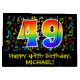 This fun, colourful, and vibrant birthday-themed gift bag design features a large number "49" having a rainbow spectrum gradient inspired pattern. It also features the message "Happy 49th Birthday,", and a customisable name. Part of the background has a pattern of various music notes and symbols having a variety of colours and sizes. A fun giftbag like this might be used when wrapping presents being given to a music composer, a musician, a singer, or somebody else in celebration of their 49th birthday. [~Z0000425]