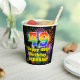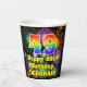 This joyful and colourful birthday paper cup design features a large number “49” with a rainbow spectrum gradient inspired pattern, along with the message “Happy 49th Birthday,”, and a custom name. The background features a vibrant and colourful bursting celebratory fireworks inspired pattern. Colourful, vibrant paper cups like this might be fun to have at a birthday party/celebration being held to honour somebody’s forty ninth birthday. [~Z0000539]