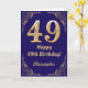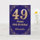 49th Birthday Navy Blue and Gold Glitter Frame Card