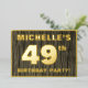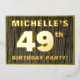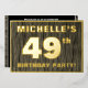 The front of this bold forty-ninth birthday party/celebration foil invitation card features a custom name, a large number “49th”, the message “BIRTHDAY PARTY!”, and a border, all in foil. There is a rustic, yet sophisticated, faux wood grain appearance inspired pattern for the background of the front. The back features personalised details about the event, such as the date, time, venue/place, and any other information that may be important. Customised invitations like these might be used to invite guests to a birthday party being held in celebration of somebody’s 49th birthday. [~Z0000598]